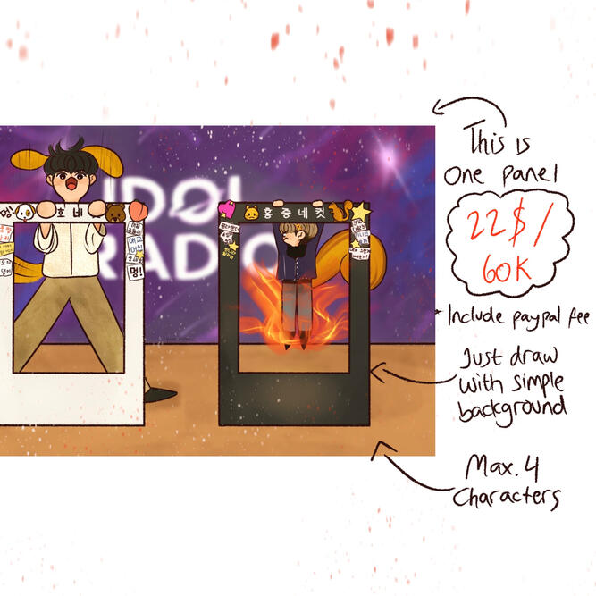 1 panel/ frame/ single drawing (max. 4 character and i dont draw layout, just panel)